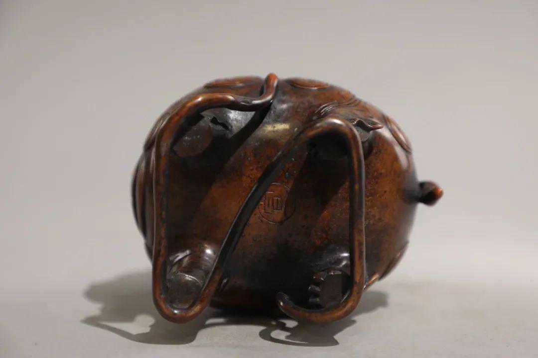 清代铜制兰花钮香薰炉。