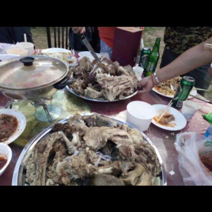 朋友卧羊的手艺娴熟,个把钟头的时间便一切搞定。之后的砍削切剁一气呵成,烹调煎煮样样精彩!