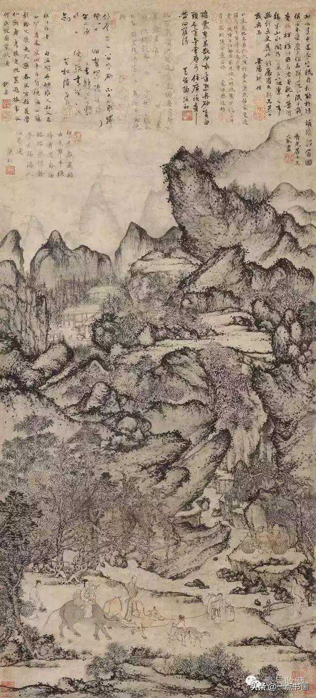 简介:《稚川移居图》描绘了东晋葛洪携带家眷移居罗浮山,修道炼丹的故事。画上有与王蒙同时或稍后的七位大学者、大画家或大诗人如韩性、倪瓒、陶复初、陈则等人的题诗。此外,《稚川移居图》上还有明代大收藏家项元汴近20余枚收藏印,极为珍罕难得。