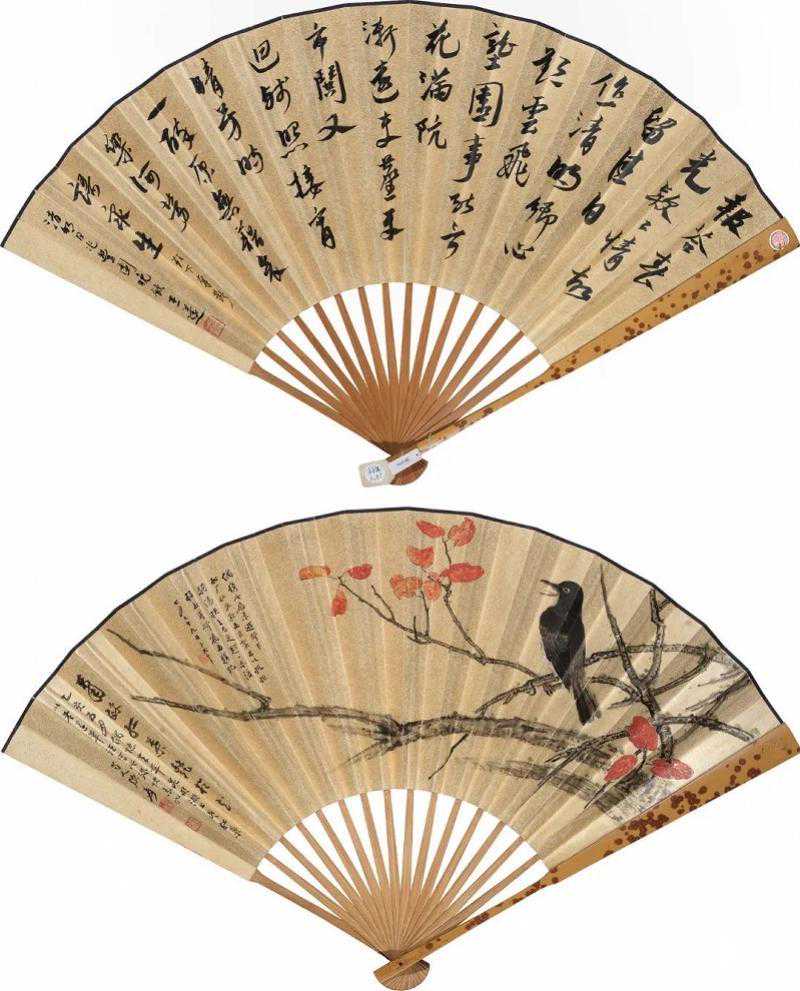 张大千《萧踈红叶艳于花》成扇乃“非闇社长叹为巨制”、“抗拒骄阳”之旧物,取法明代大家陈洪绶,并上溯宋代院体画。笔法脆俏,赋色瑰丽,构图清疏,配合泥金质地,呈现出一种极具装饰性的美学思想,富丽堂皇却又雅逸清穆。匠心所在之处,亦有人文精神,大雅之极。殊为难得的是,此扇除意境清幽之外,题记中还记载了张大千、于非闇二位大师多年交游往来中的一段佳话,于后人对二位大师的年谱之研究亦有补益。