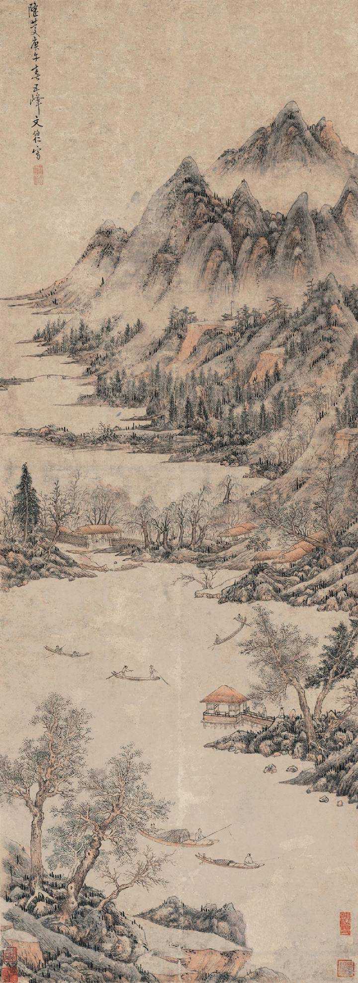 总的来说,文伯仁是一位极具天赋和创造力的画家。他的山水画作品既展现了他的绘画技巧,也反映了他对自然和生命的独特感悟。
