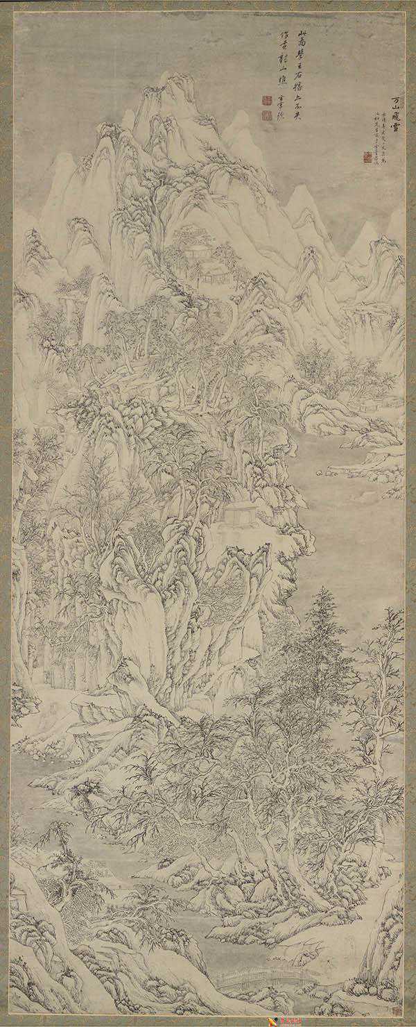 在简笔山水画中,文伯仁巧妙地运用细秀的笔墨,描绘出疏朗的景色。这些作品构图简洁,笔墨细腻,充满了诗情画意。而在繁笔山水画中,文伯仁则借鉴了王蒙的画风。他运用饱满的构图和繁密的皴点,将山林层叠、境界郁茂的景色展现得淋漓尽致。
