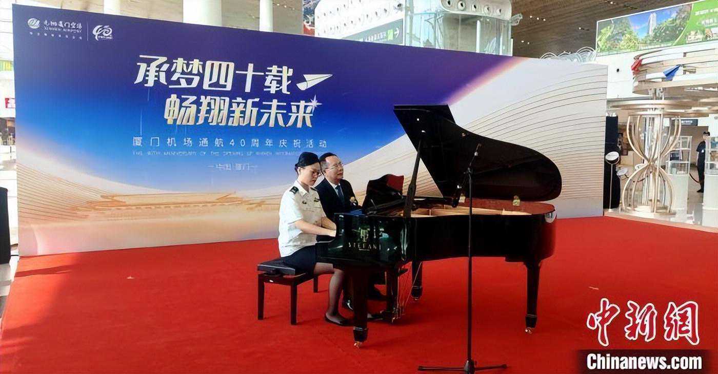 中新网厦门(记者杨伏山)为庆祝厦门机场通航四十周年,全国台湾同胞投资企业联谊会常务副会长、厦门市台商投资企业协会荣誉会长吴家莹于10月22日与厦门机场工作人员合奏了钢琴曲《鼓浪屿之波》。这一活动标志着“承梦四十载畅翔新未来”人文机场音乐会的开始。