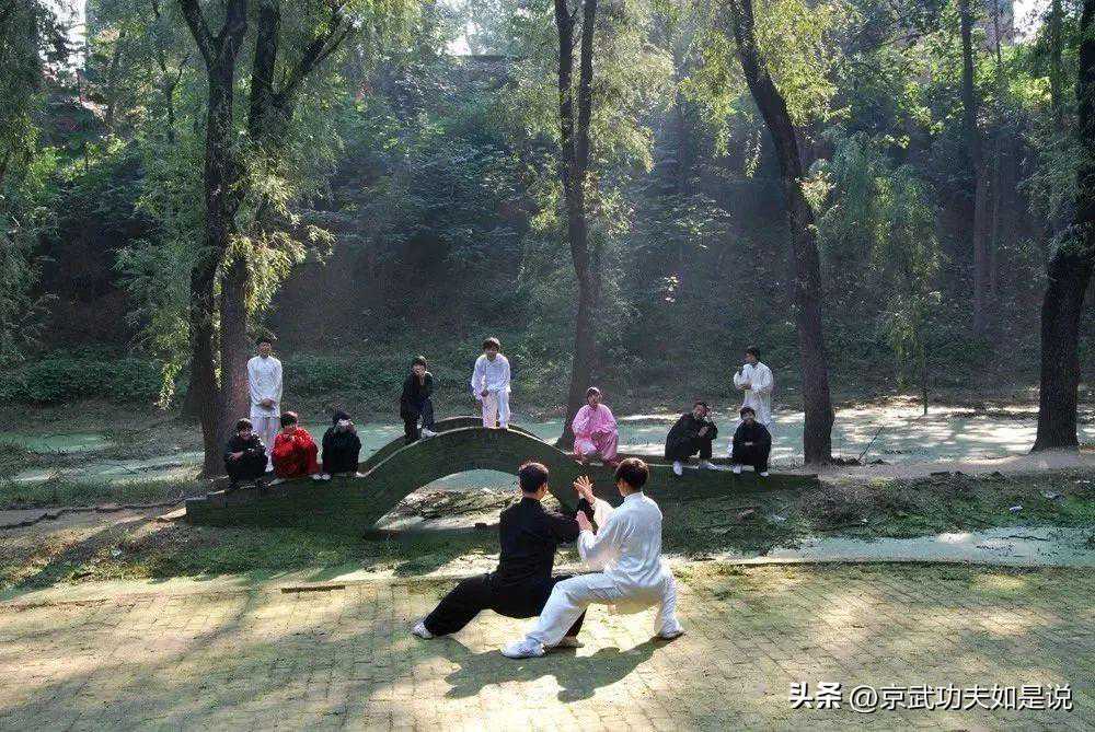 到这时候,你会发觉单推手就是懒扎衣的一种用法,四正手就是云手、如封似闭、搂膝拗布、野马分鬃的运用,你才会在走架的时候把内在的东西体现在架子里。