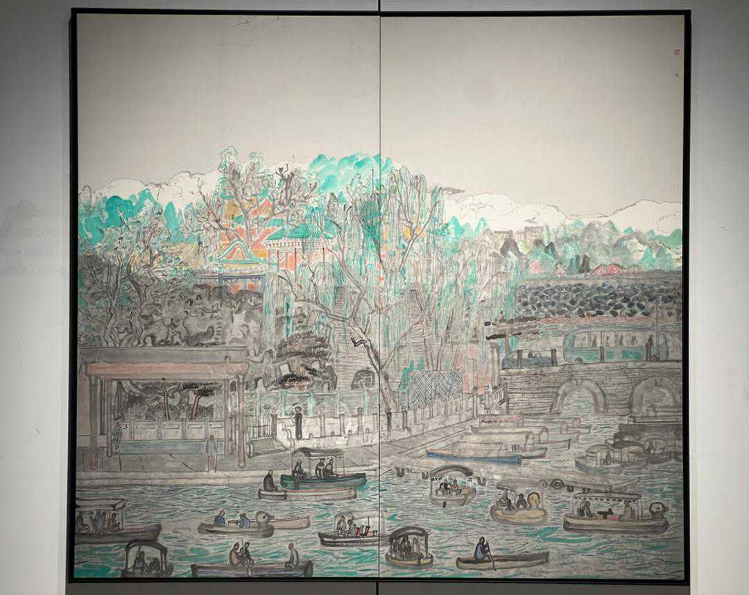 走进方向先生的个人展览,仿佛走近一方崭新的山水境界,他笔下的北京不仅有巍峨的紫禁城,还有车水马龙,城市繁嚣和人间温暖。本次作品展分为“琉璃尘世”、“浮生若梦”、“江山风月”、“万象澄澈”四大板块,作品集中展示方向先生在近几年的创作,见证他个人艺术风格的转变及对于艺术道路的持续探索。在他的画作中,北京城市中园林宫殿,烟火生辉,繁华与古典交织,仿佛一幅微梦的画卷,透出温情的人间烟火,尽显尘世生活的蓬勃生机。