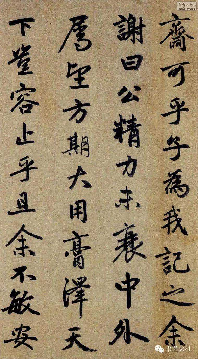 赵孟頫《止斋记》上海博物馆藏《止斋记》,纸本,现藏上海博物馆。此篇是行书代表作之一,书于至大元年,时年55岁(1308年)。通篇字形俊秀飘逸,而笔笔又谨守法度,体现了他极深的行楷功力,乃至后学无法超越。