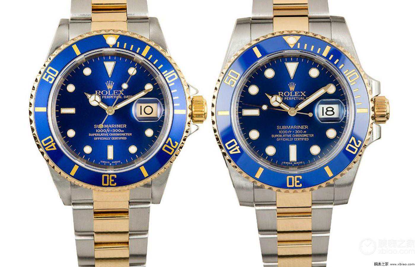 劳力士间金水鬼16613(左)和现在的116613(右),两者在细节和配置上,有很多不同。