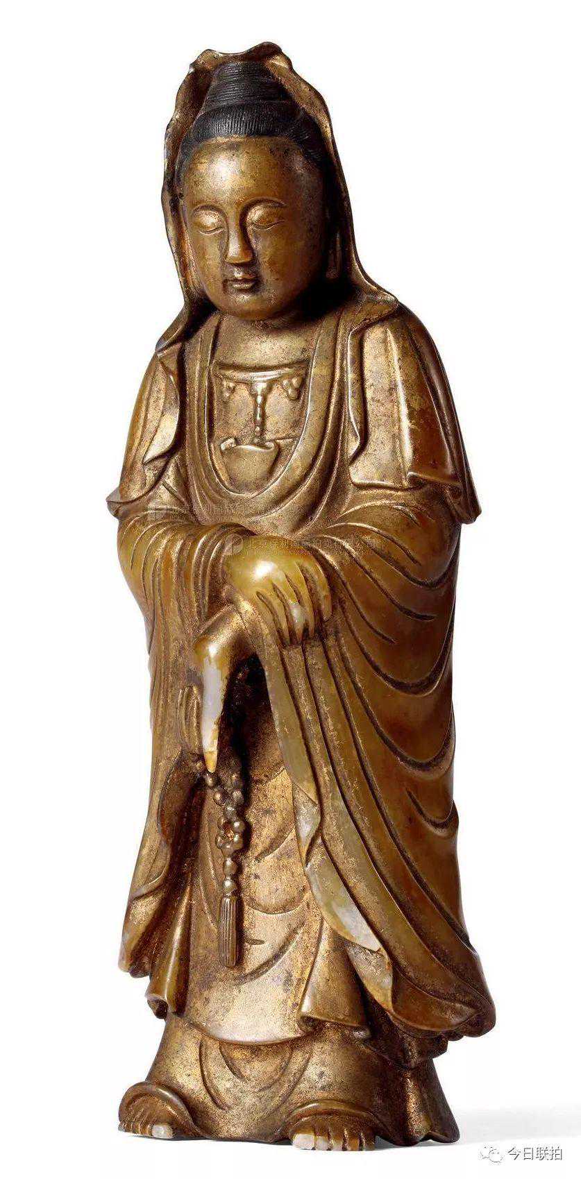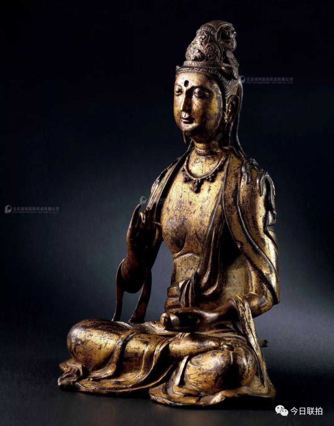 元代铜金持经观音像