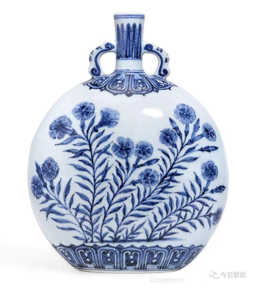 明永乐青花紫石竹图抱月瓶