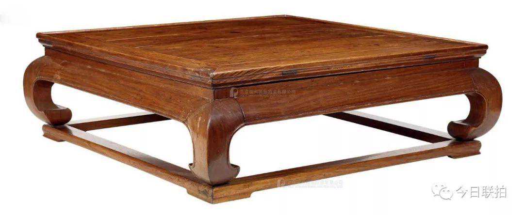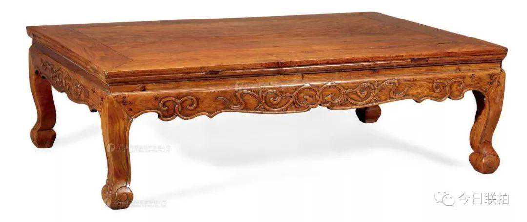 17世纪黄花梨有束腰卷草纹三弯腿炕桌