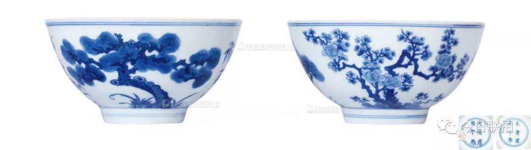 清康熙青花松竹梅纹碗(一对)