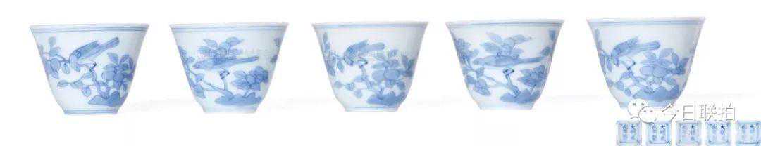 清康熙成化青花花鸟纹杯(五件一组)