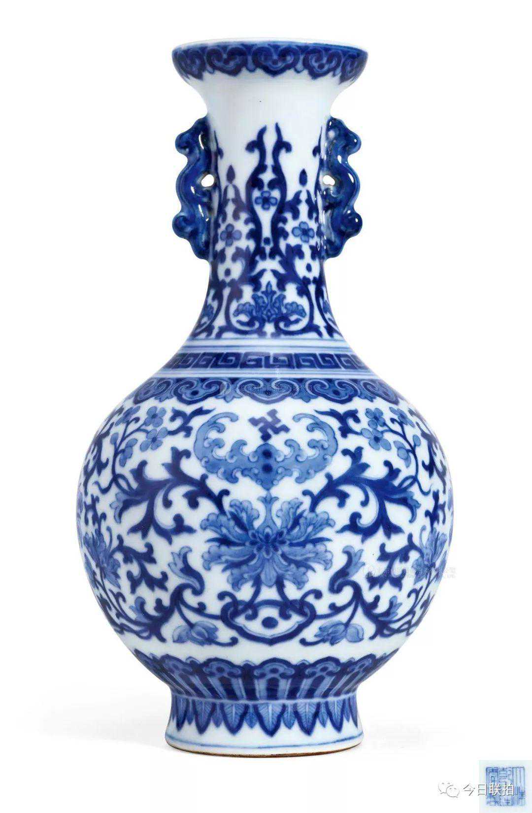 清乾隆御窑青花万福连绵龙耳瓶
