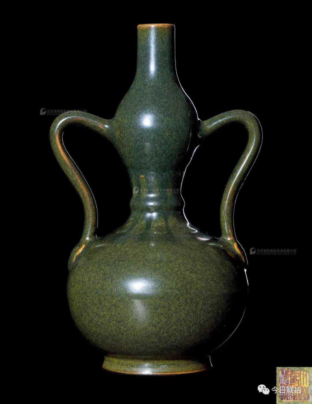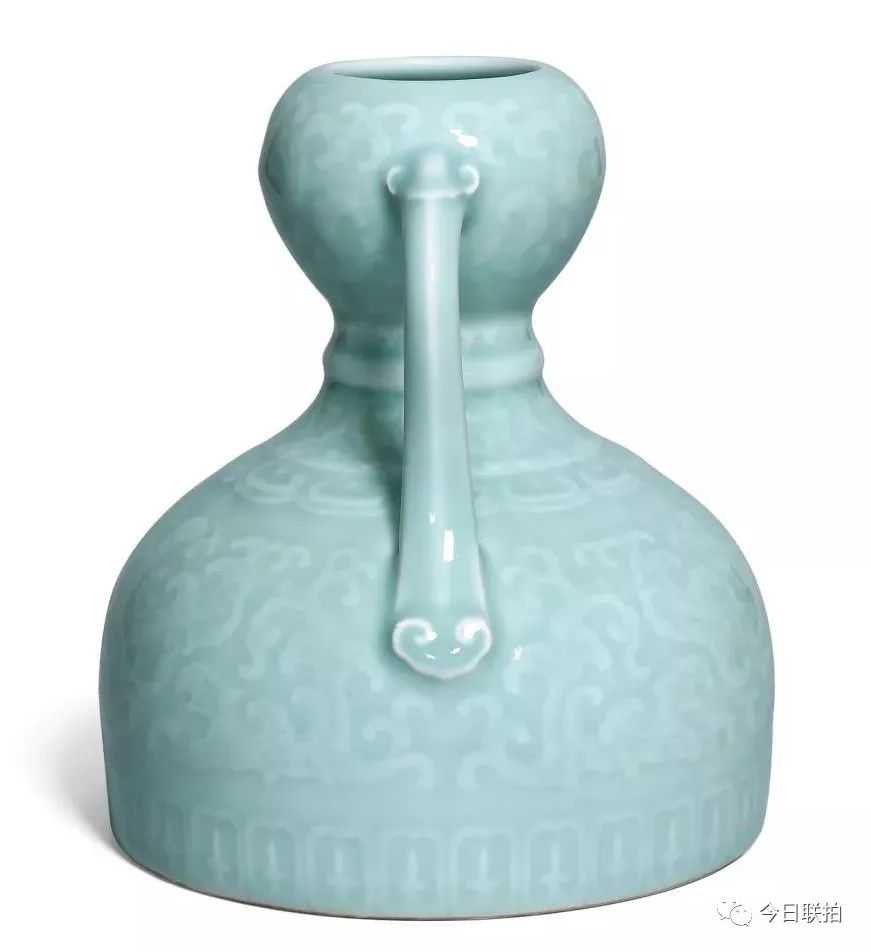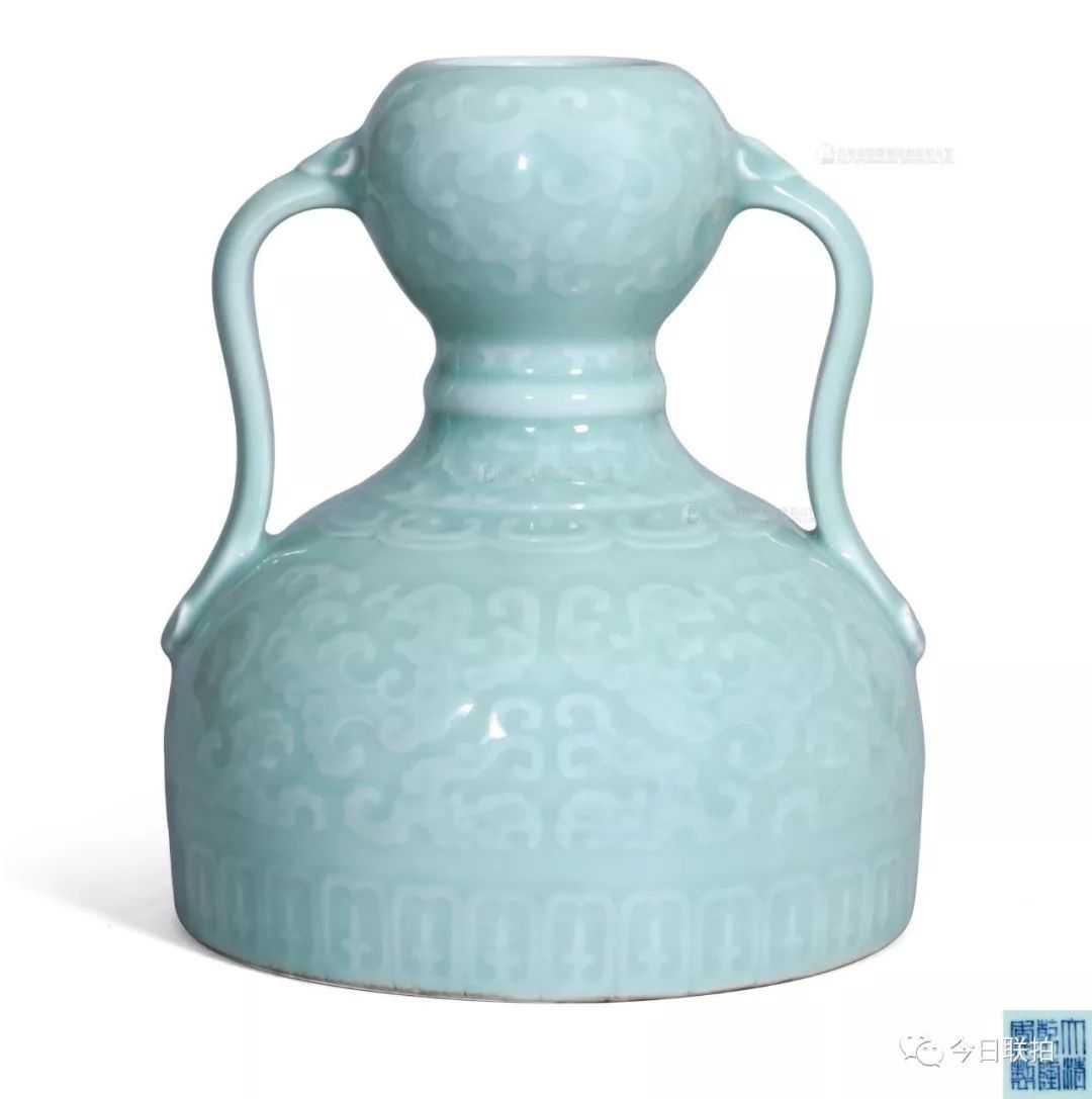 估价最高拍品清乾隆粉青釉浅浮雕夔龙纹如意耳葫芦尊,通体施青釉,釉色青翠盈润,上下两段器形及纹饰皆互为呼应,均以夔龙纹为主体,束腰饰纵向相对如意纹,近足处饰蕉叶纹一周,层层纹饰间以适当留白作为区隔,古朴典雅。