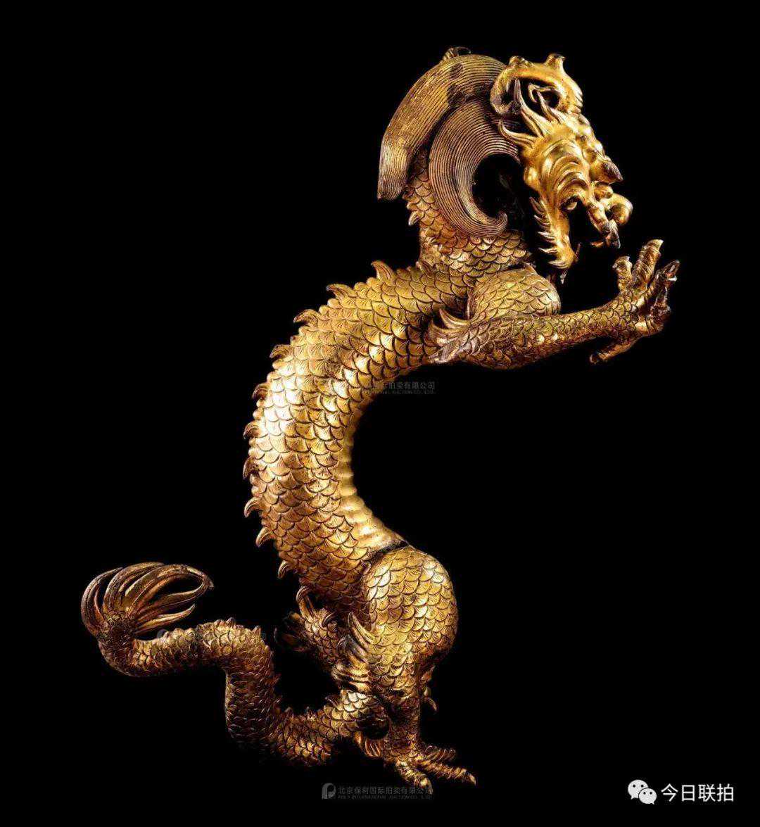清雍正金铜铸雕「游龙」立像