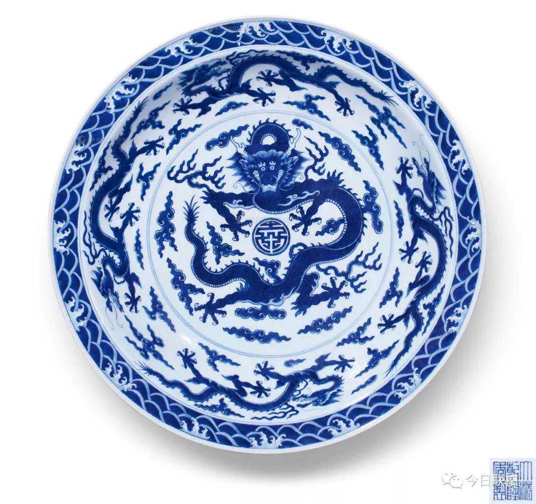 清乾隆青花跃龙捧寿纹大盘
