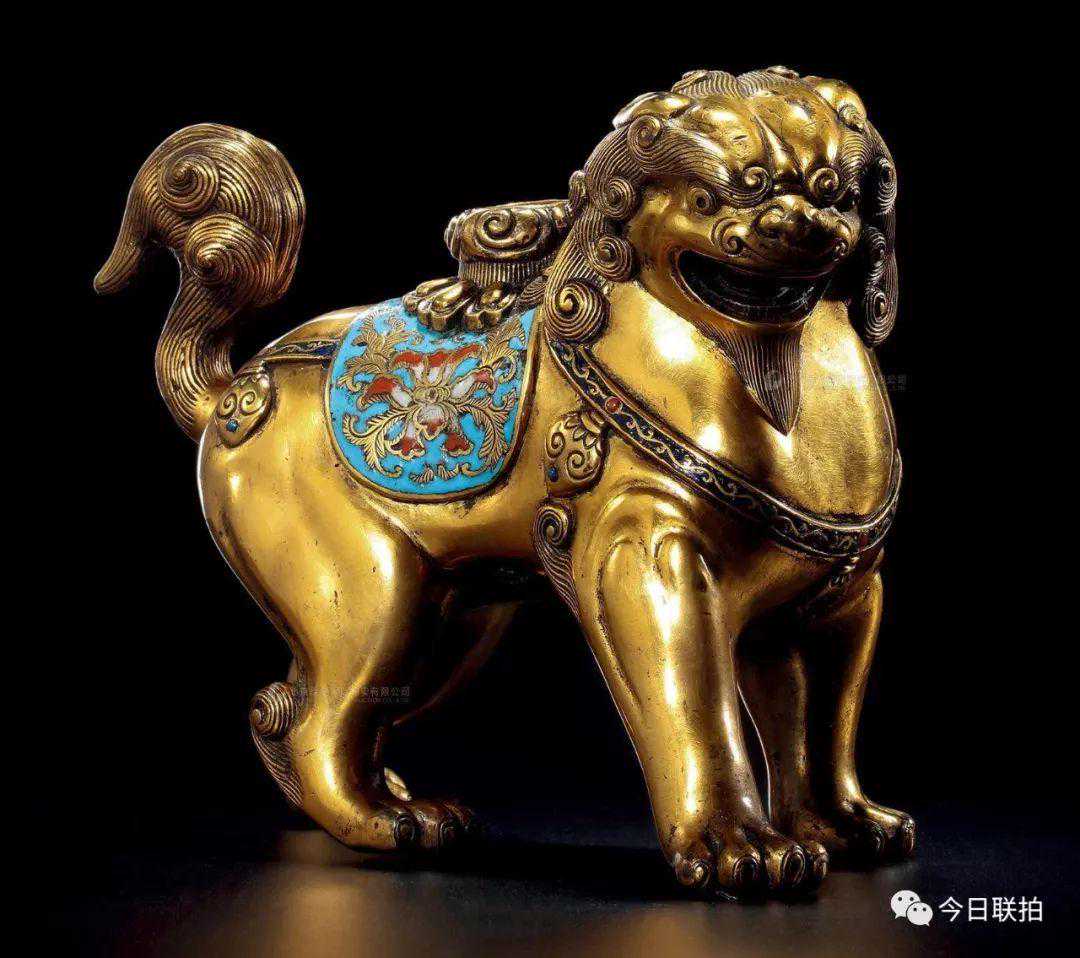 17世纪铜胎丝珐琅狮子摆件