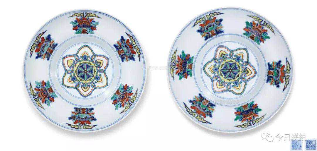 清乾隆斗彩描金八宝纹折腰盘(一对)