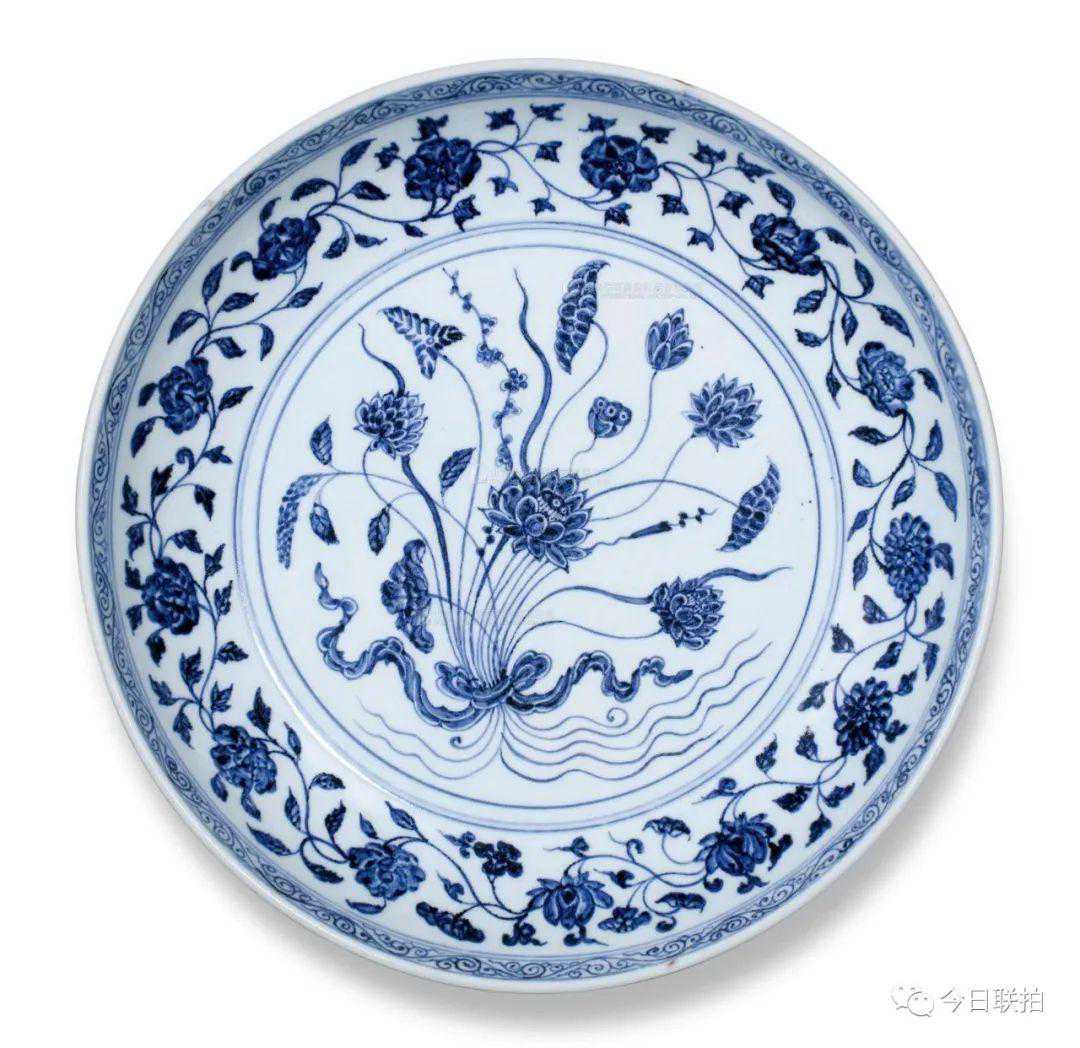 明永乐青花一束莲纹大盘