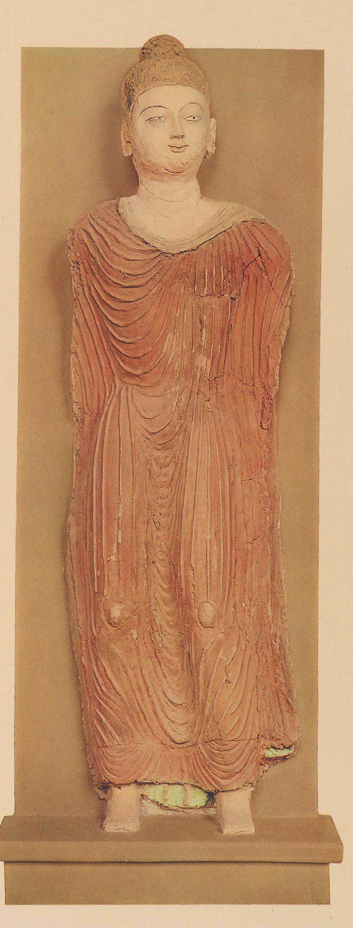 图5b中国笈多式佛衣中的锯齿纹衣裾冬宫收藏柏孜克里克佛寺遗址出土立佛