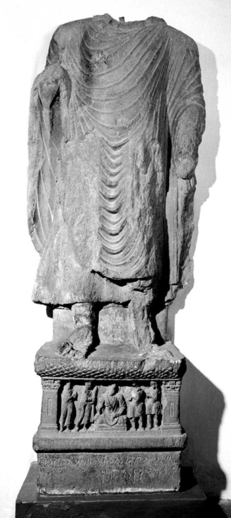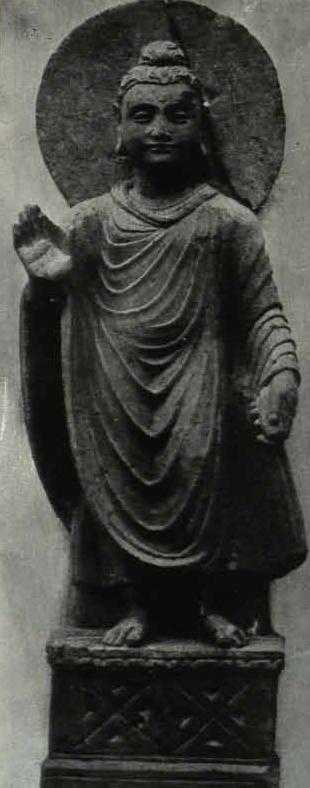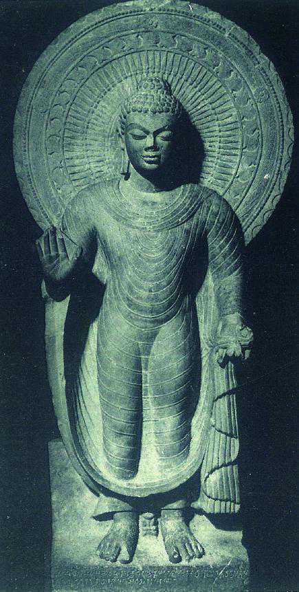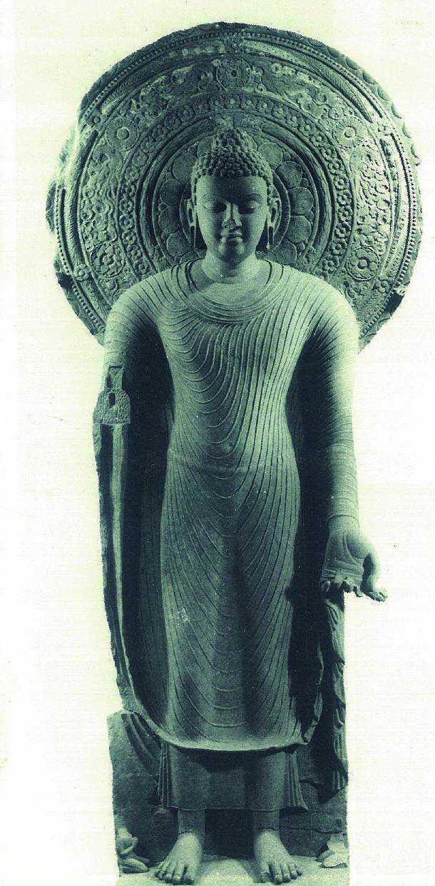 图12b有纪年铭的犍陀罗佛像加尔各答印度博物馆藏“318年铭”立佛像