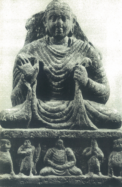 图8a通肩式贴身衣纹的坐佛像秣菟罗博物馆藏迦腻色伽51年铭文坐佛像