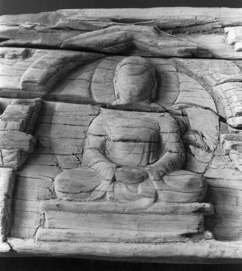 图10a五佛类似的背光与头光瑞典斯德哥尔摩民族博物馆藏楼兰LA遗址出土的木雕残件
