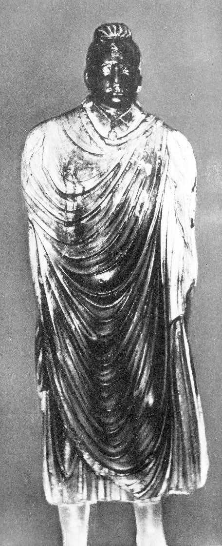 本文拟从两件金铜像的细节入手,联系古印度的佛教造像,对其呈现出的外来因素和本土因素的关系进行分析,以探讨此两件珍贵早期佛像的年代。不当之处,敬请指正。