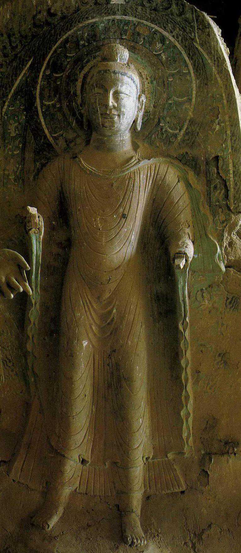 图5c中国笈多式佛衣中的锯齿纹衣裾炳灵寺169窟北壁后部立佛像