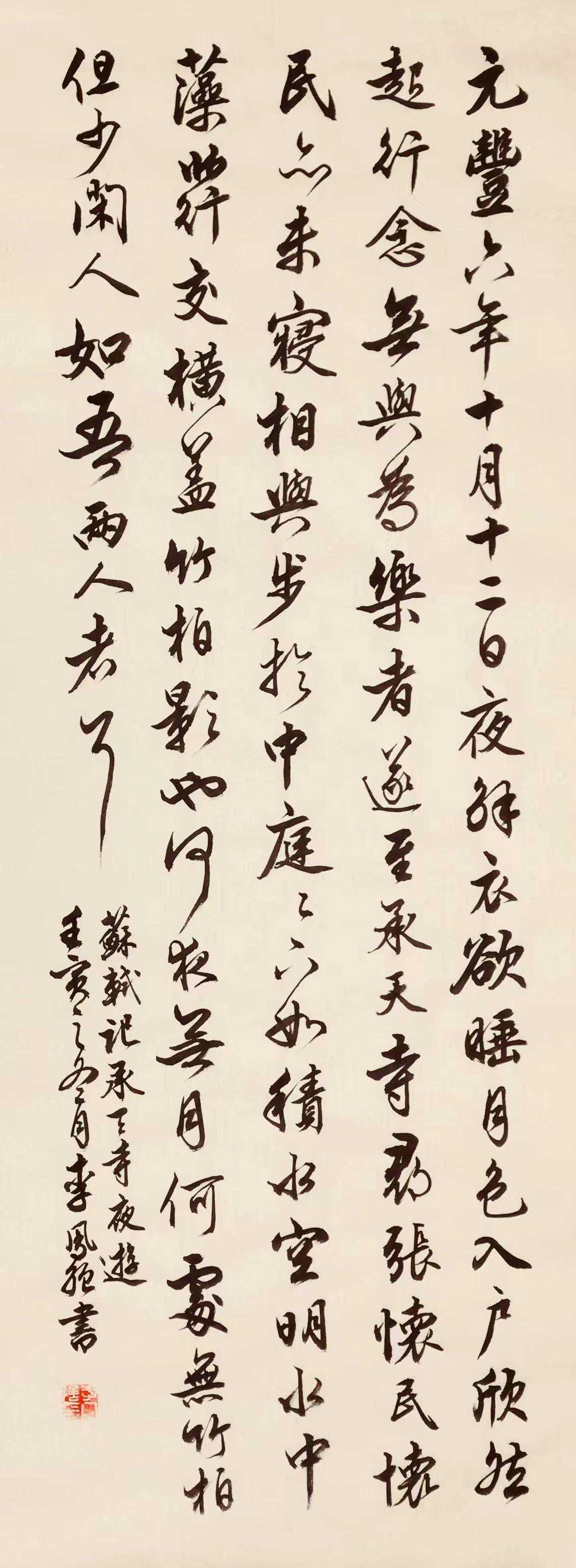 元丰六年十月十二日夜,解衣欲睡,月色入户,欣然起行。