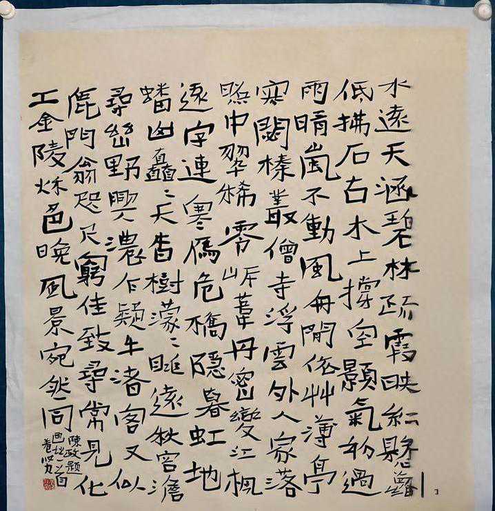 接下来是张红春。作为陕西省书法家协会副主席,他以楷书和行书为主要创作风格。他的作品也多次获奖,并在多家博物馆中展示。