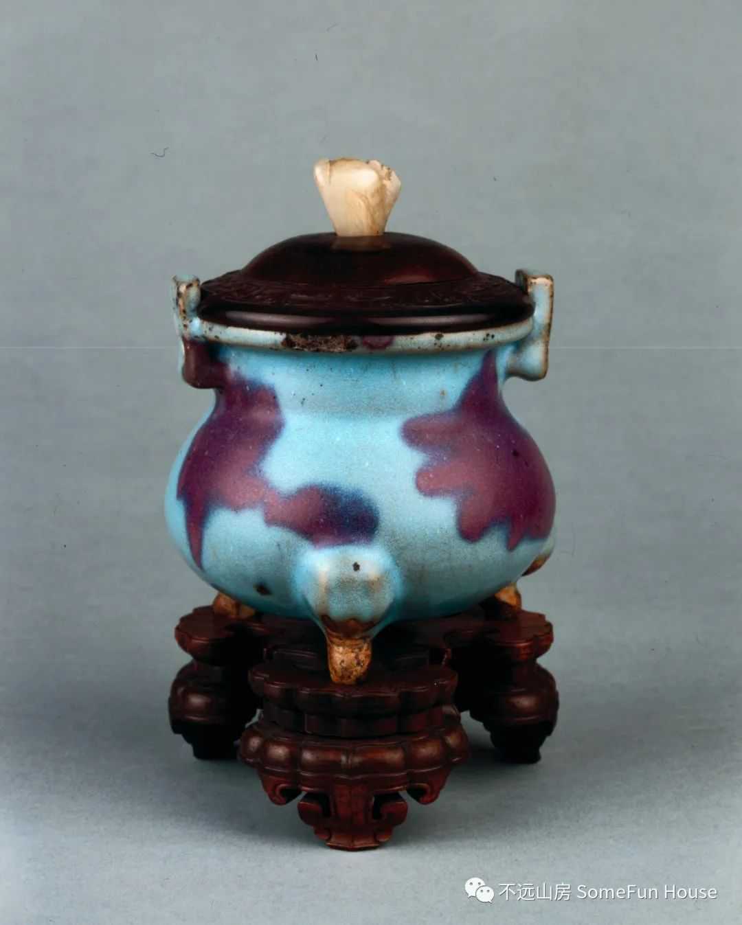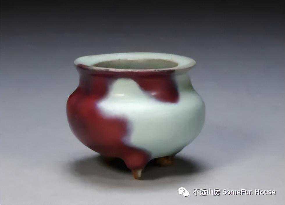 大都会艺术博物馆藏金代钧窑天青釉玫瑰红窑变三足炉