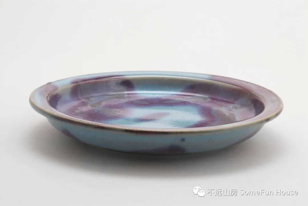 美国克利夫兰艺术博物馆藏宋-金钧窑天蓝釉紫斑折沿盘。口径:18.1厘米。