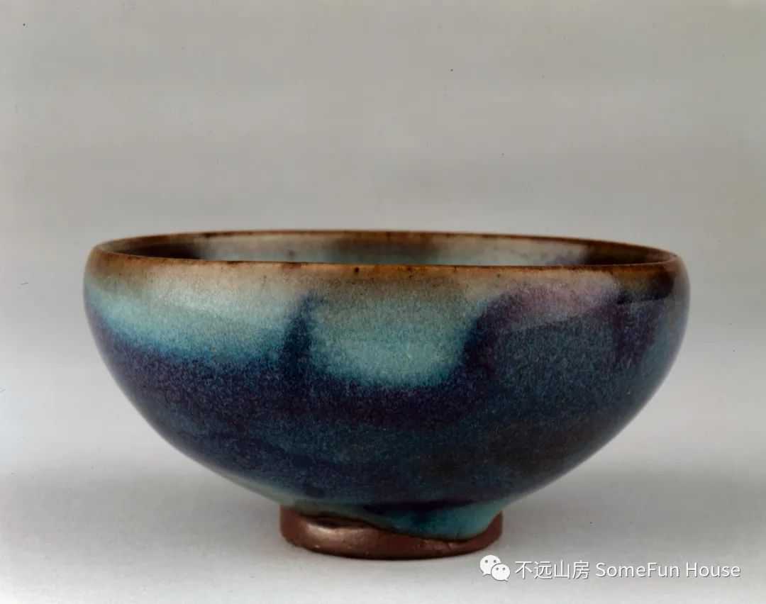 大都会艺术博物馆藏金代钧窑天青釉玫瑰红窑变碗