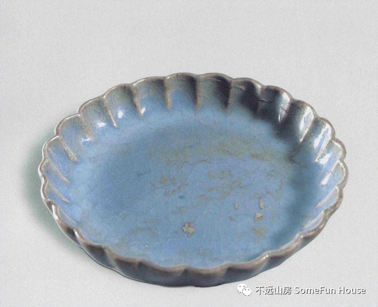 河南博物院藏金代钧窑天蓝釉红斑葵口盘1976年方城县拐河菜园出土。