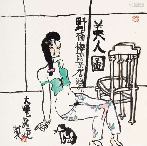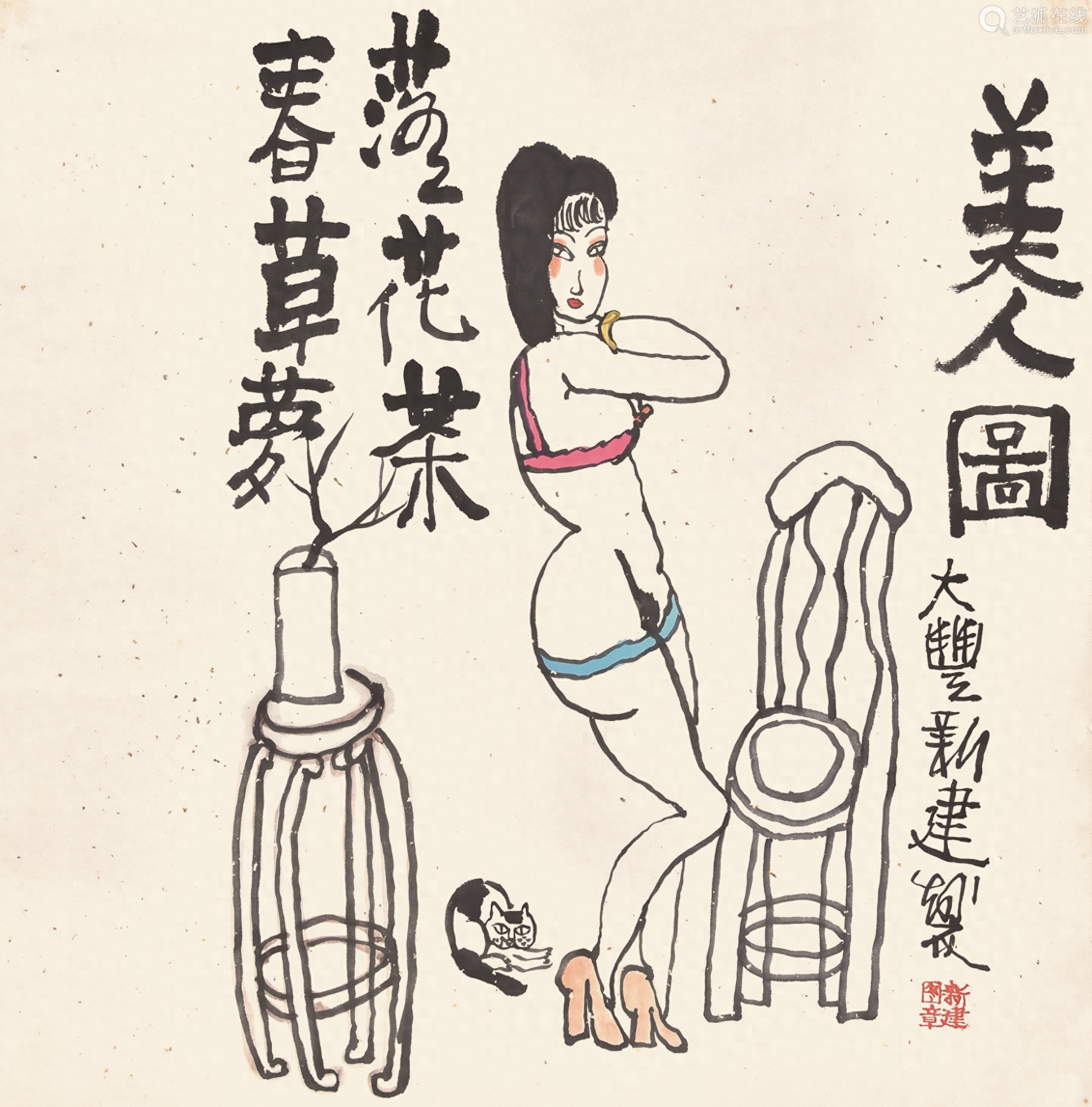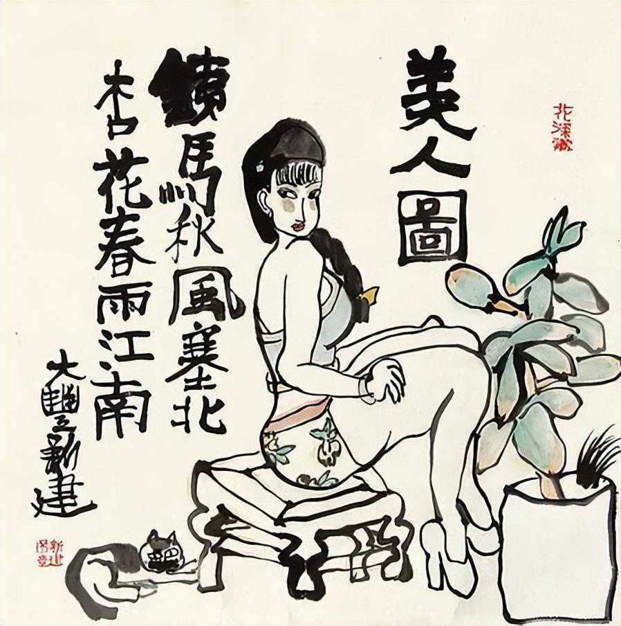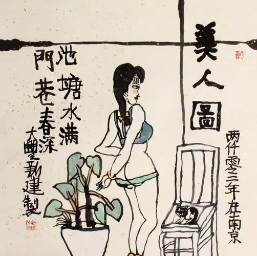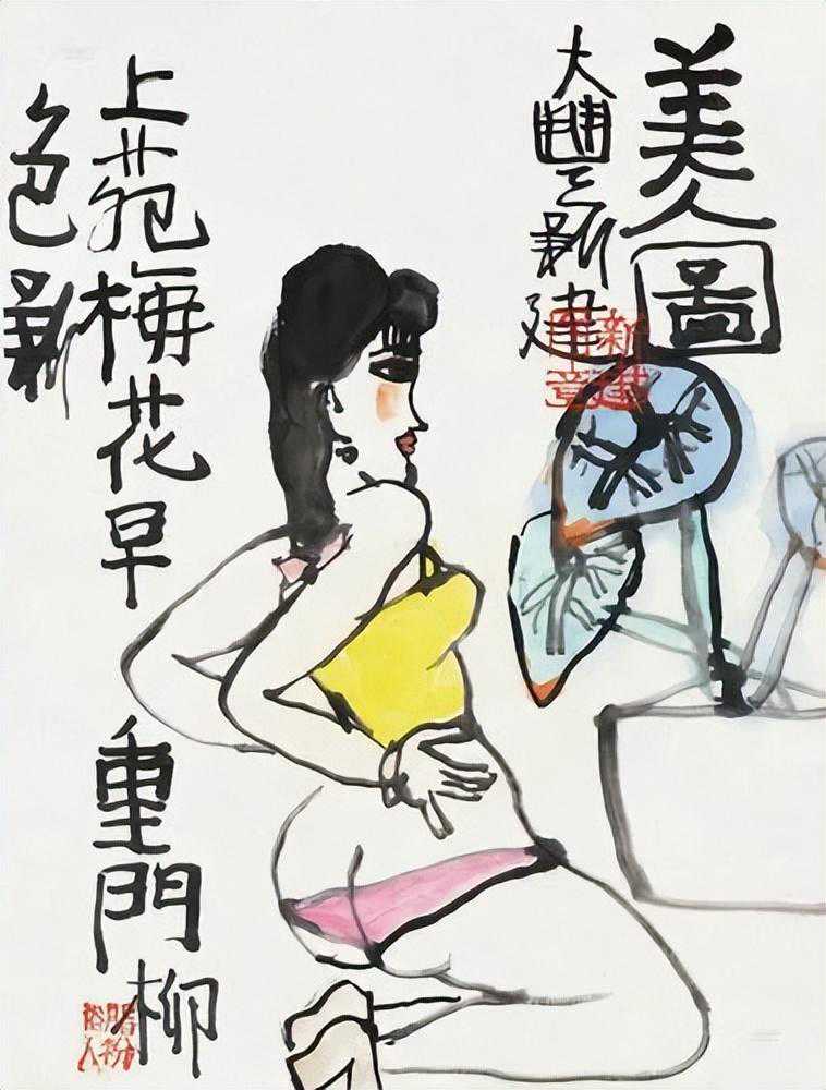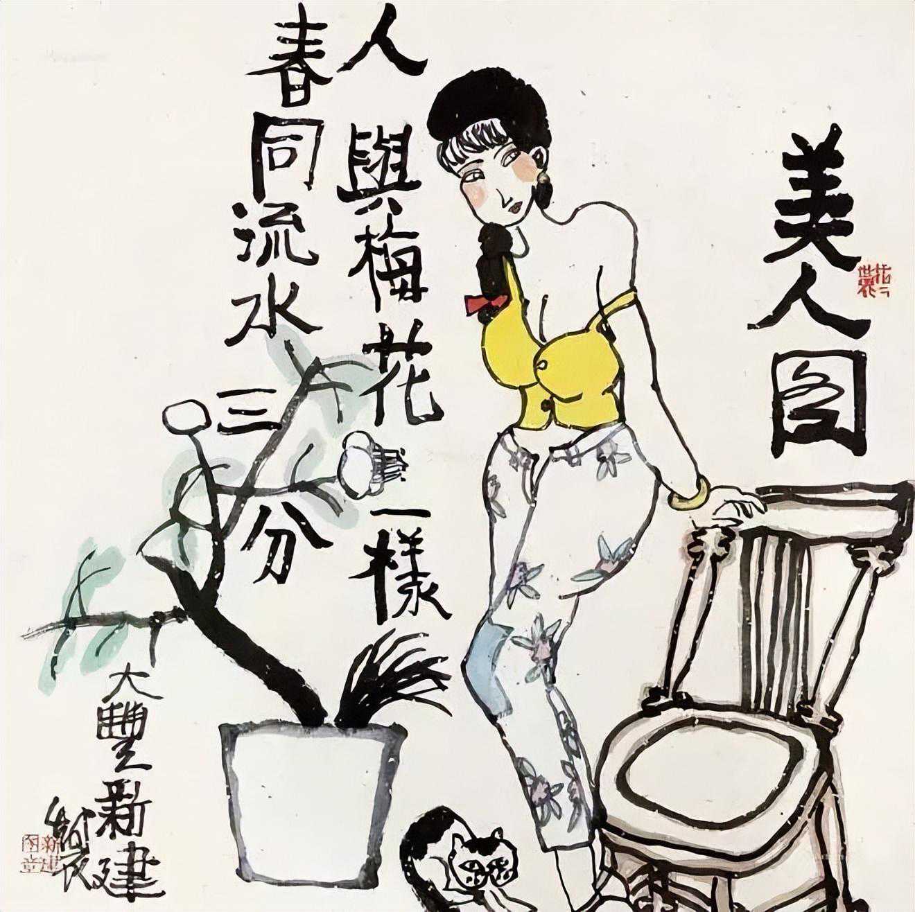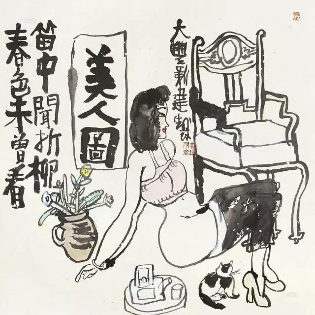 总有人觉得,朱新建把女人画得既性感又媚惑,“玷污”了艺术的圣洁,他居然以涂鸦式的笔法去画高雅的中国画,“亵渎”了中国画的笔墨精神。他为什么画画这么不认真?他为什么把美人画得这么性感?他为什么要改变我们对美人的审美?
