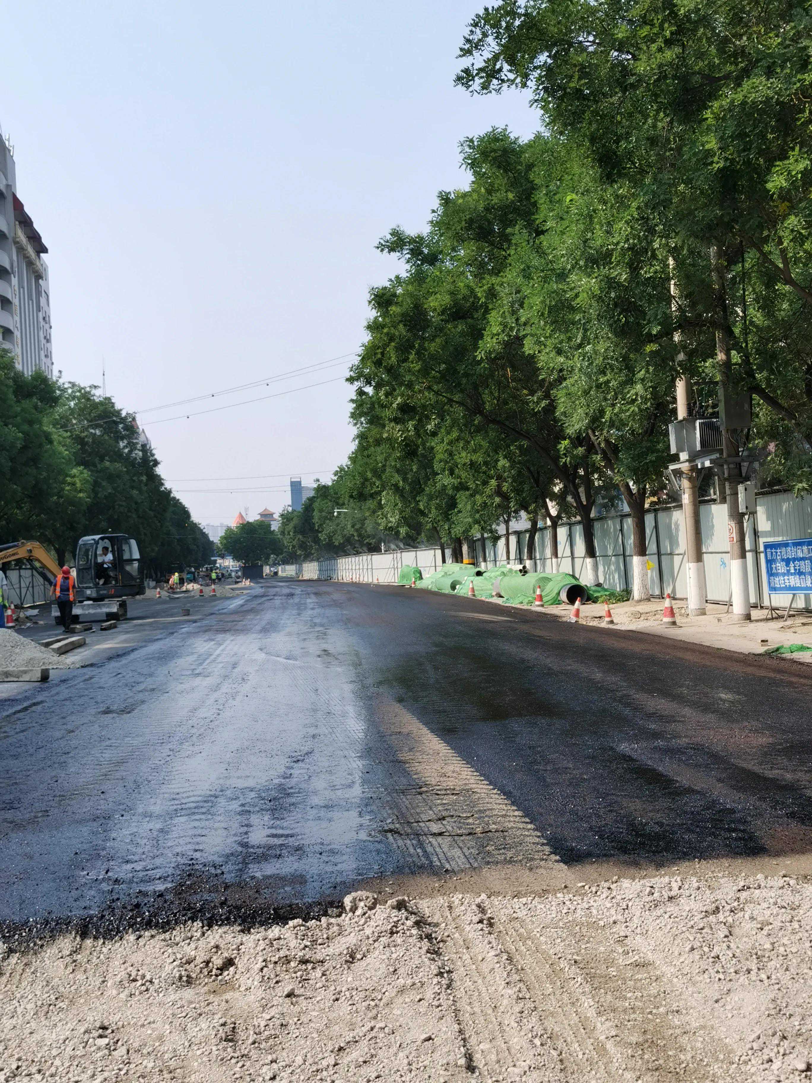 大槐树至太白楼路正在干铺混凝土(现在修路混凝土采用干铺,就和铺瓷砖一样)。