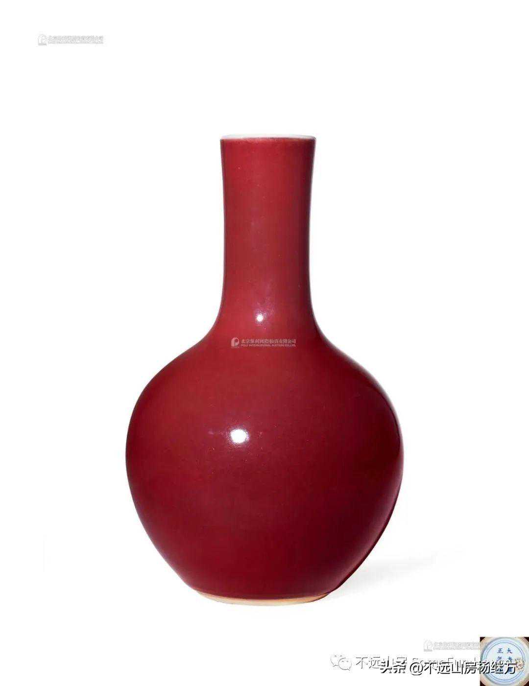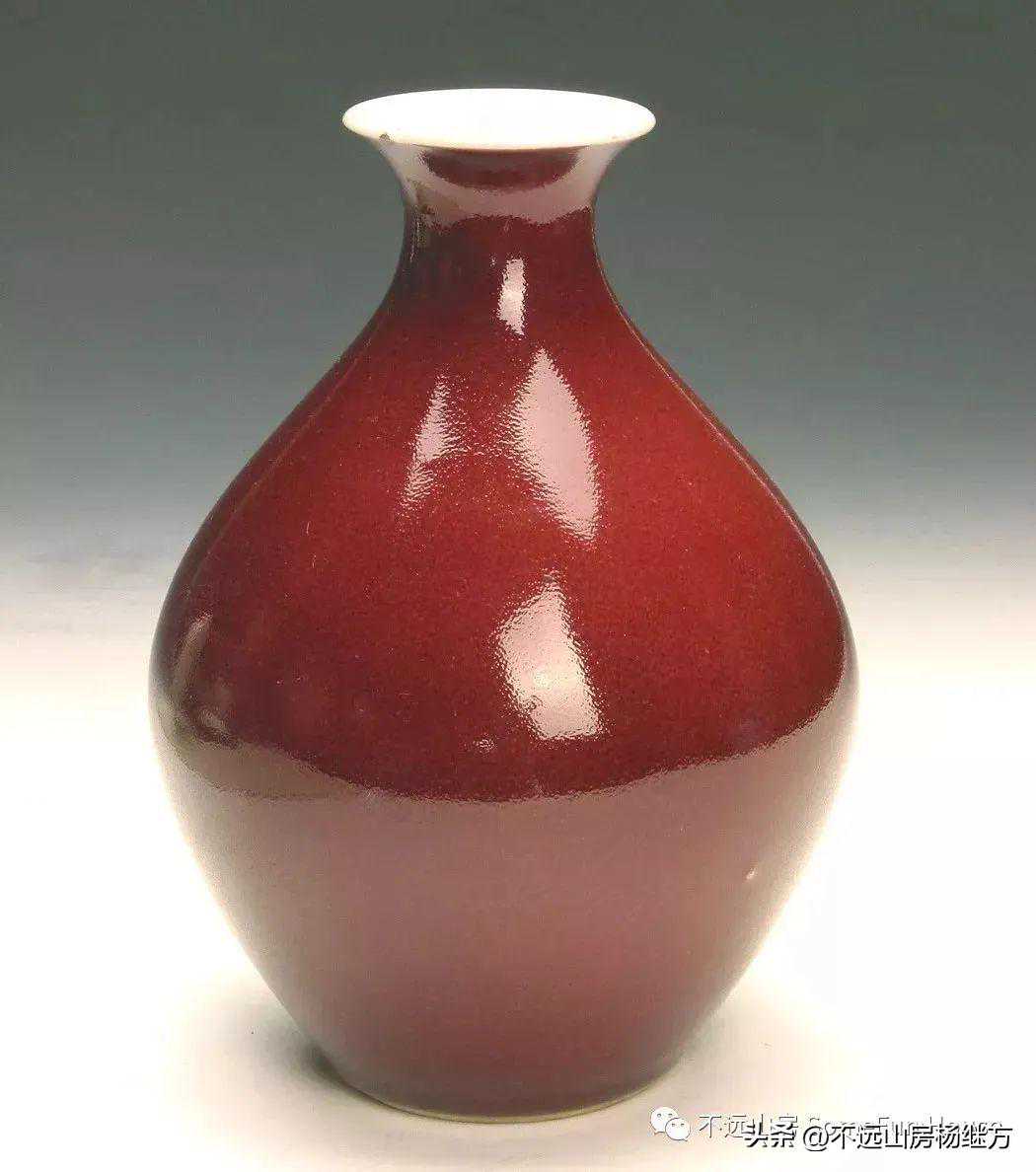 铁红釉,又称矾红、珊瑚红釉,是以氧化铁为呈色剂,在低温氧化气氛中烧成的一种微带橙黄的砖红色釉。雍正时的珊瑚红器釉层薄透而均匀,有明显桔皮纹色调沉着光润精美,呈现出富丽堂皇精致典雅的宫廷气象。珊瑚红釉是康熙时期创烧的低温彩釉,以铁为着色剂,因其釉色红中闪黄,色如红珊瑚而得名。此品颈部细长,器形秀美挺拔,如美人娉婷婀娜,全器满施珊瑚红釉,釉色细腻匀净,鲜艳纯美。《陶雅》谓之“华贵中之佚丽者也..匀净明艳,殆亡伦比。紫晶逊其鲜妍,玫瑰无其娇丽。”胭脂红虽然在康熙中早期就传入景德镇御窑厂,但是由于科技含量较高、造价较昂贵,直到康熙末期也没有被御厂普及使用。雍正中后期,由于御窑厂制瓷的发展革新,胭脂红逐渐推广使用至众多彩瓷领域。