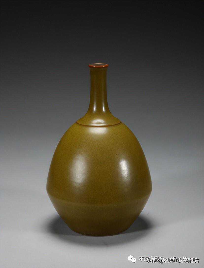 英国VA博物馆藏雍正绿釉柳叶瓶茶叶末釉蒜头瓶炉钧釉敞口瓶
