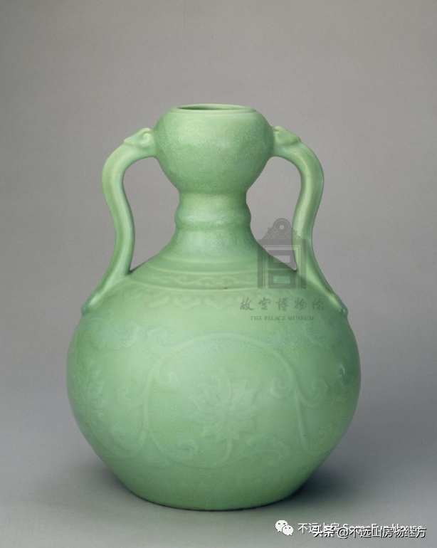 故宫博物院藏清雍正粉青釉凸花如意耳蒜头瓶