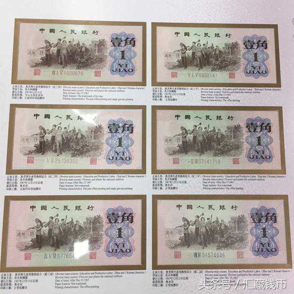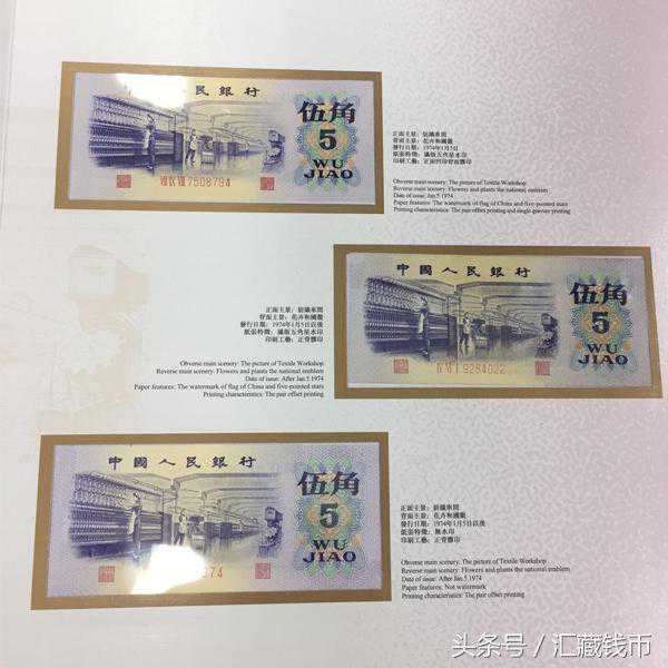 4、补。由于三版纸币使用的时间比较久。很多纸币会有破损,掉角、破洞之类的情况。很多币商会对破损的纸币进行修补。通常会采用银行绑1万元的那种白色的纸条。纸条的纸张材质跟第三套人民币的纸张材质类似。水洗之后,在纸币破损之出用纸条贴上,然后用专用颜色笔,手工修改。这类的纸币,广泛运用于品相差,单价低的礼品册。客户只要求单价低,对品相无要求。鉴别的方法,在强光的对比下,肉眼就能明显的看出修补过的痕迹。