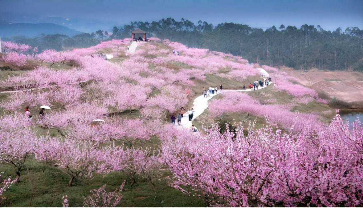距离中心城区140公里,车程约2小时,樱花盛花期为2月下旬-3月上旬,紫薇盛花期为7月上旬-8月下旬,自驾导航目的地可选择“紫薇花海”。