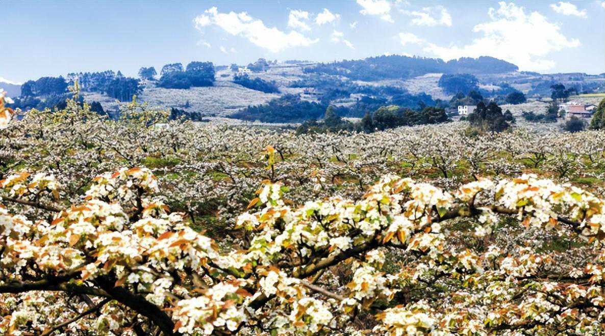 距离中心城区80公里,车程约1.5小时。盛花期为3月下旬-4月上旬,自驾导航目的地可选择“永川区中华梨村”。