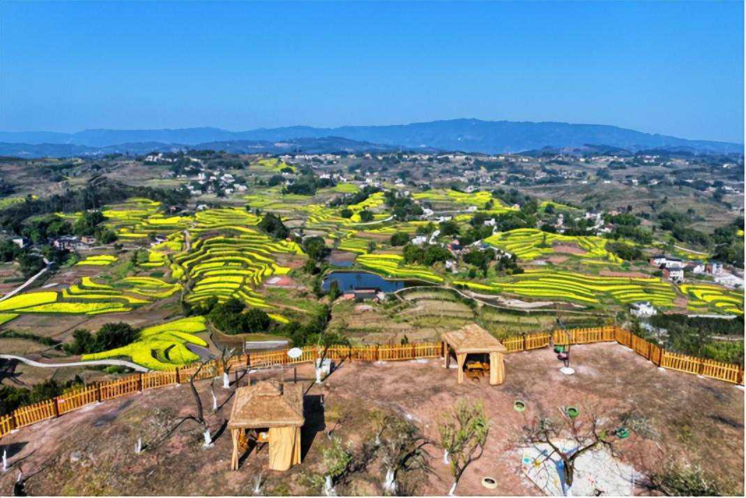 距离中心城区100公里,车程约1.5小时。盛花期为3月中旬-4月中旬,自驾导航目的地可选择“永川区仙龙镇油菜花基地”。