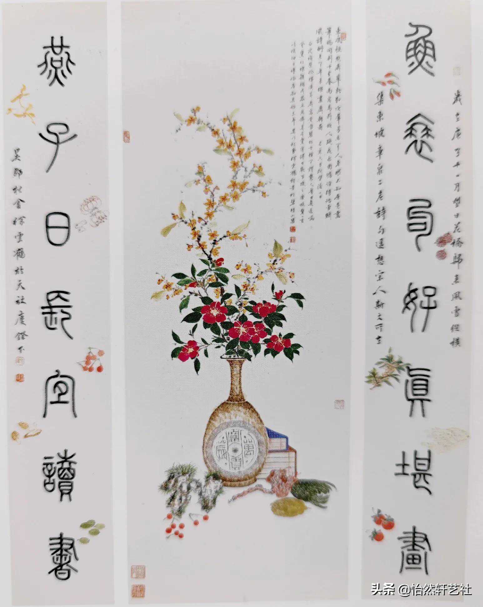 新春,见罗溪书院中,中堂楹联掇英,古意盎然,然已离五代孟昶的“新年纳余庆,佳节号长春”之绝唱一千多年了。如此蔚为大观,如汉王褒《圣主得贤臣颂》所言:“聚精会神,相得益彰”!