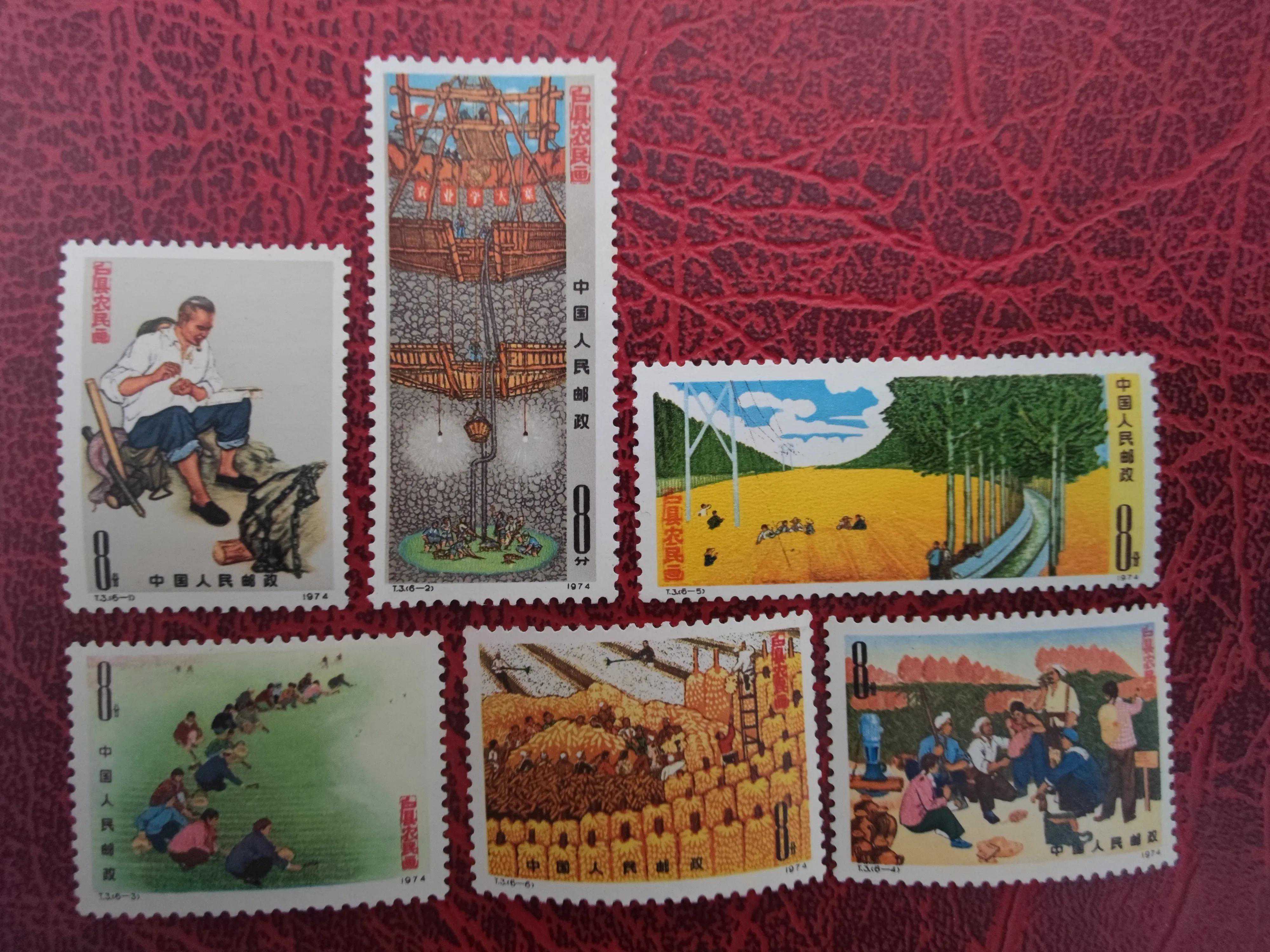 1974发行的T3户县(户县农民画)邮票全套6枚,作品中反映出了中国陕西秦岭农村面貌,生活气息十分浓厚,色彩绚丽,构思朴素大方。反映的是高原打井的过程。画面中有秋天的,有白云飘动的蓝天,笔直绵长的绿色树木,有金黄色的田野,有丰收的果实,显现出一派丰收的壮观景象。这套邮票通过户县农民的六幅图画,典型地反映了70年代中国农村的面貌。