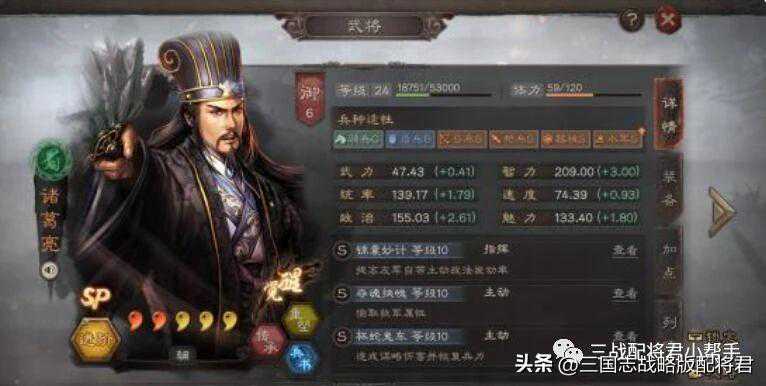 (主将)SP诸葛亮,战法搭配:暂避其锋+非攻制胜/刮骨疗毒/草船借箭(全智力)