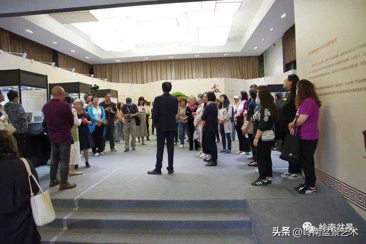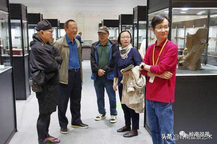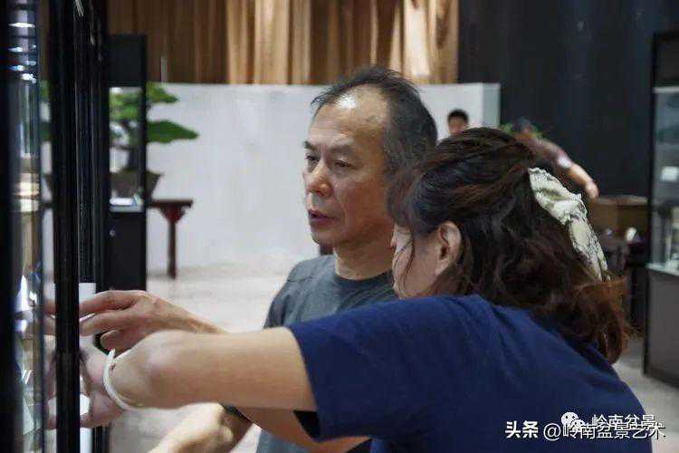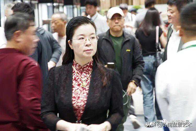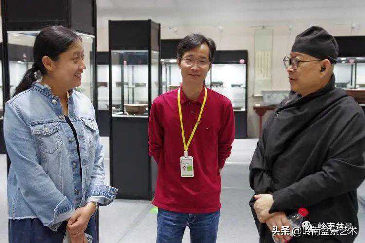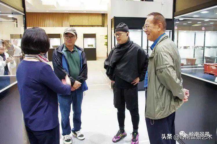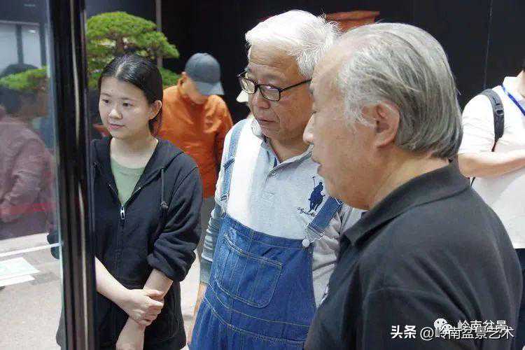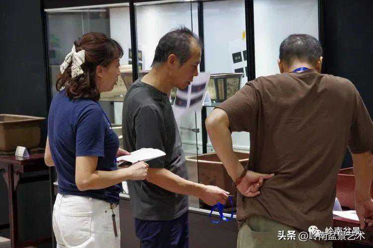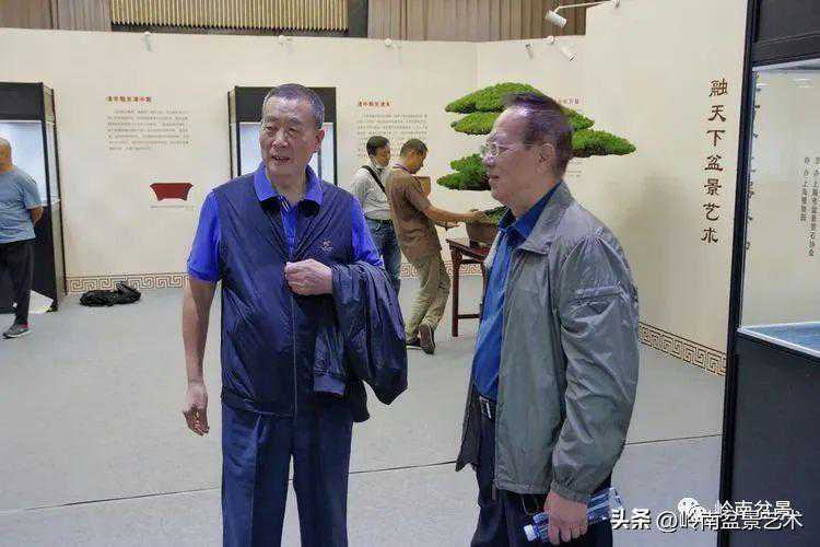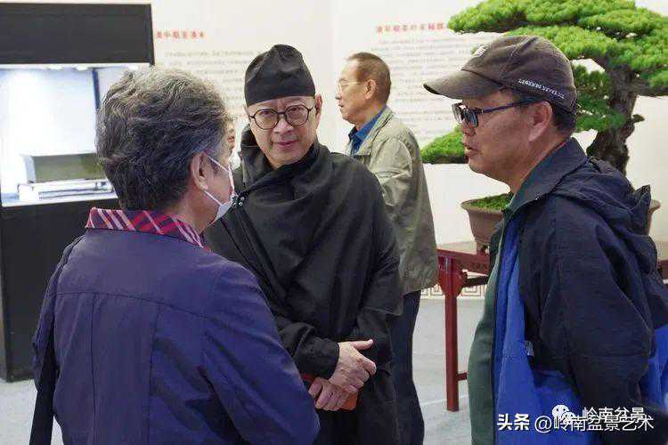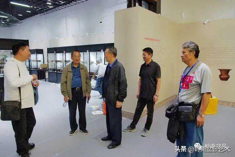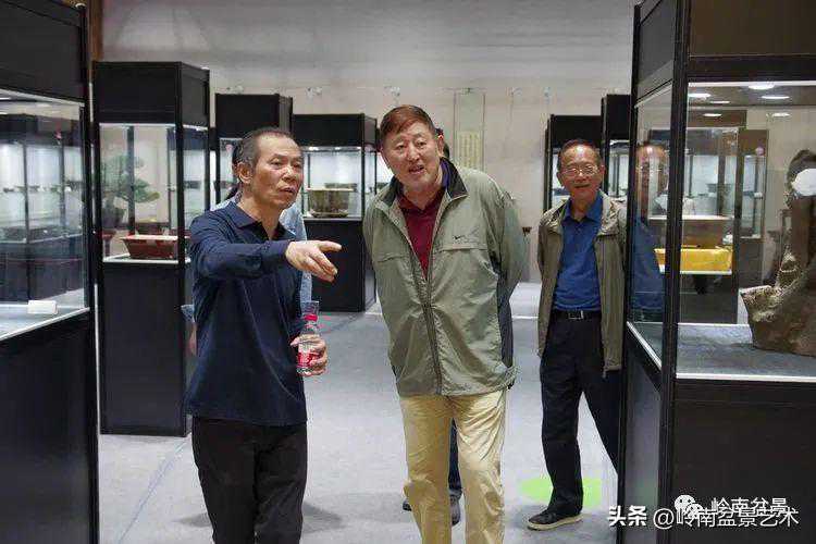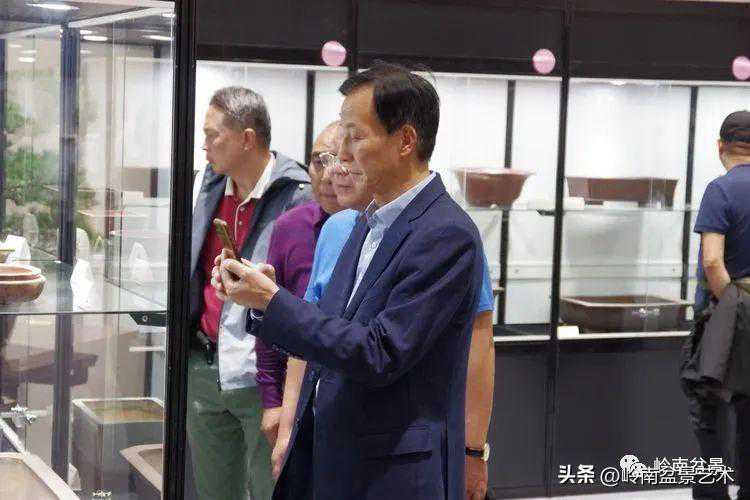 中国盆景艺术家协会理事会秘书长兼执行会长苏放、中国盆景艺术大师徐昊等贵宾参观古盆展
