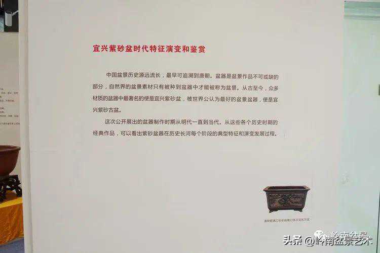 本次展览通过前期的展品征集,精选出不同历史时期的盆景盆器,来展现盆器的风姿雅韵,重点展示明代至当代每个历史阶段的优秀古盆作品四百余件,其中包含不少宜兴国家级工艺大师作品与协会会员个人藏品。旨在让广大观众通过观赏这些盆器,了解其历史进程、造型工艺,艺术特色与风格,感受盆景盆器所传递的传统文化信息。在享受盆景盆器艺术美和古典美的同时,多角度认识盆景在园林文化中的艺术地位,从而更深层次地理解园林艺术的丰盈内涵。