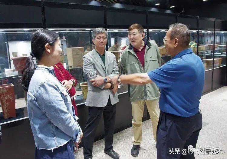中国风景园林协会花卉盆景赏石分会原常务副理事长李克文参观古盆展